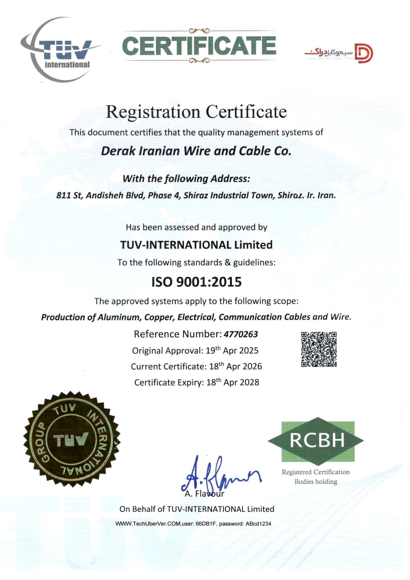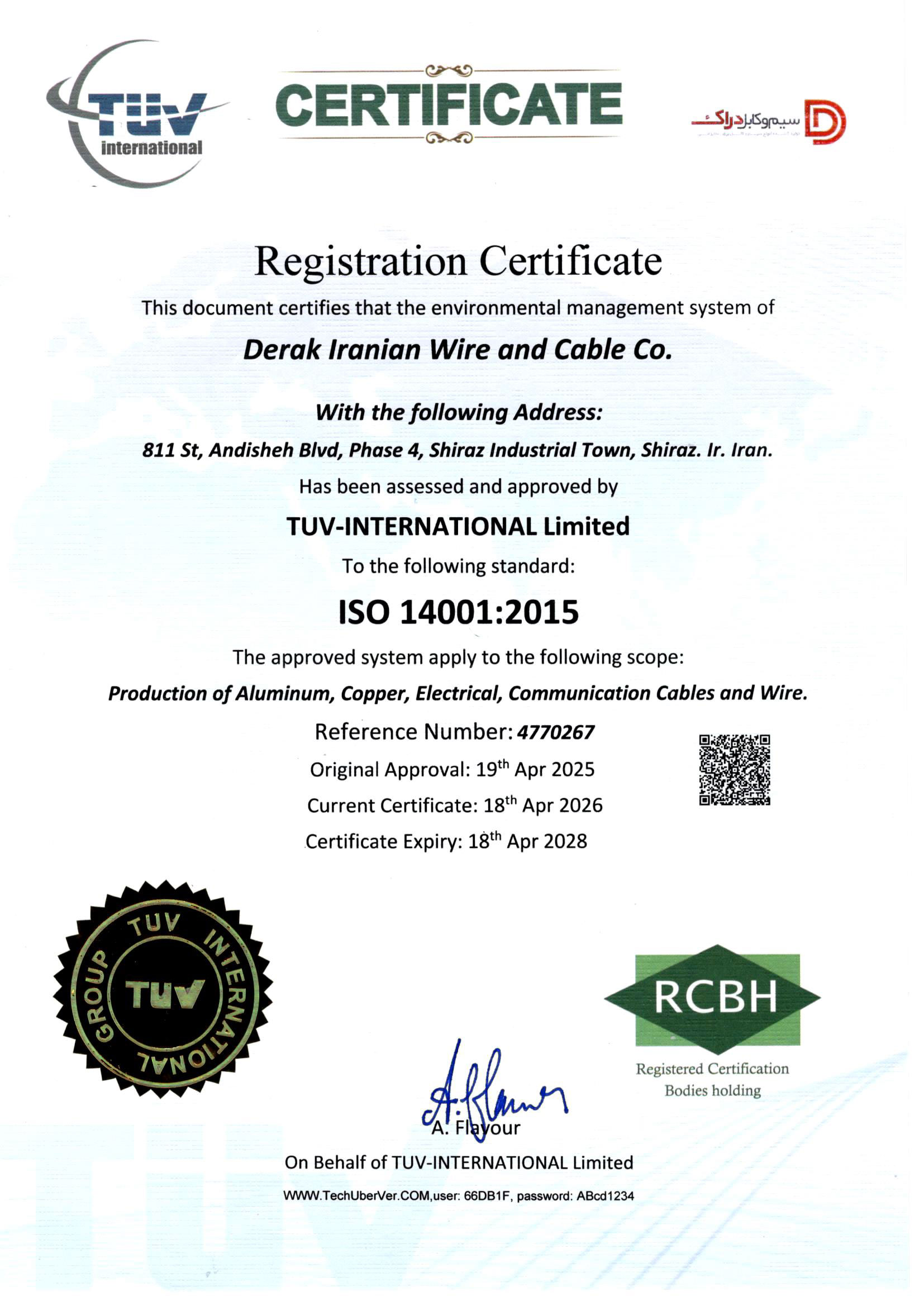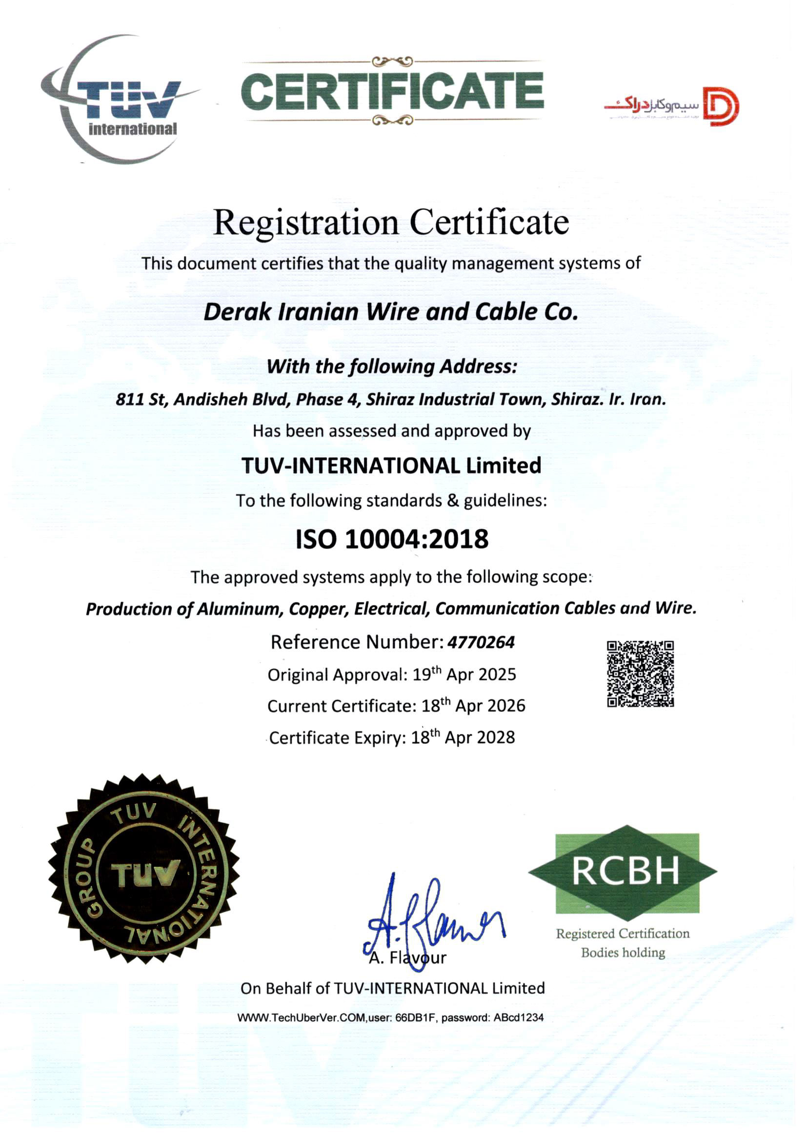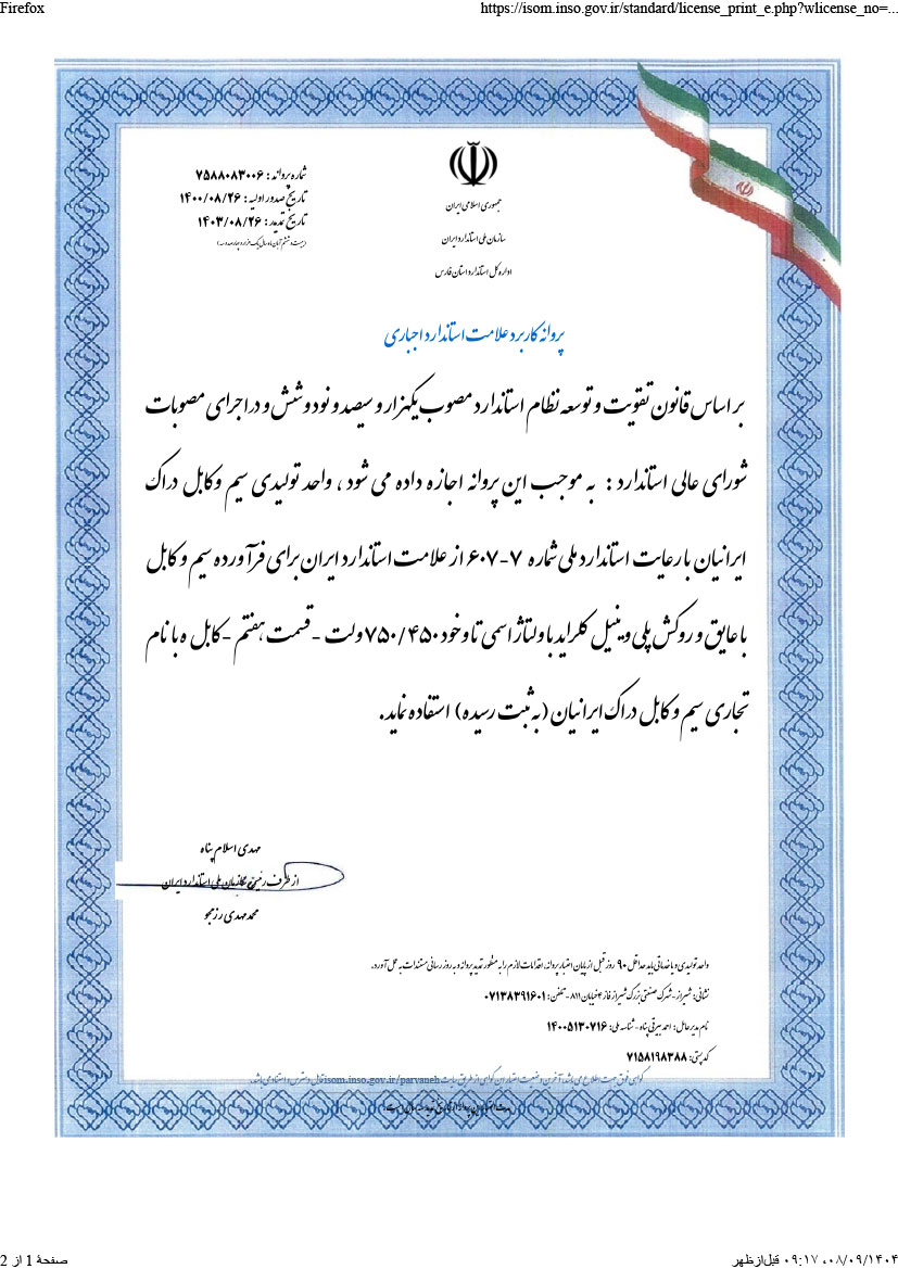 استاندارد های شرکت سیم و کابل دراک ایرانیان